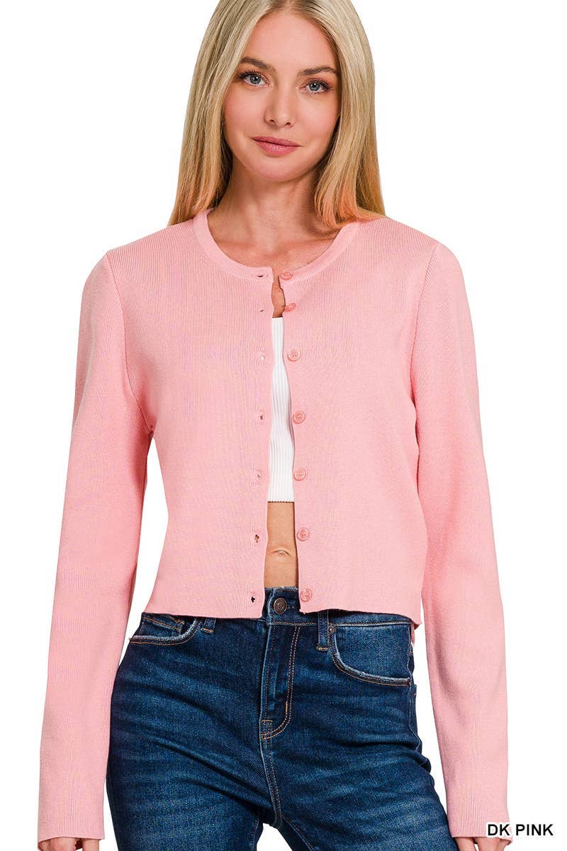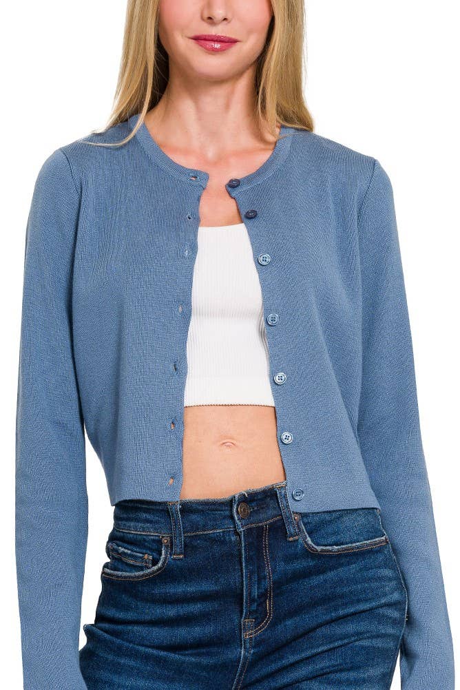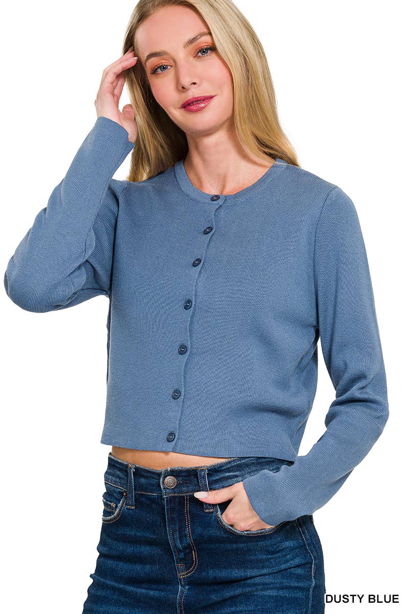 7 Button Crewneck Long Sleeve Cardigan Total Body Length