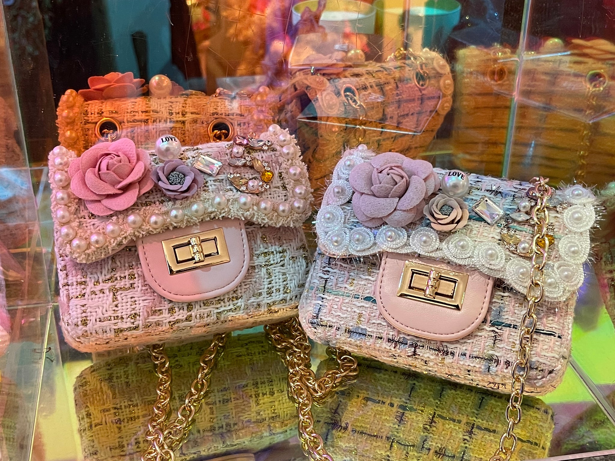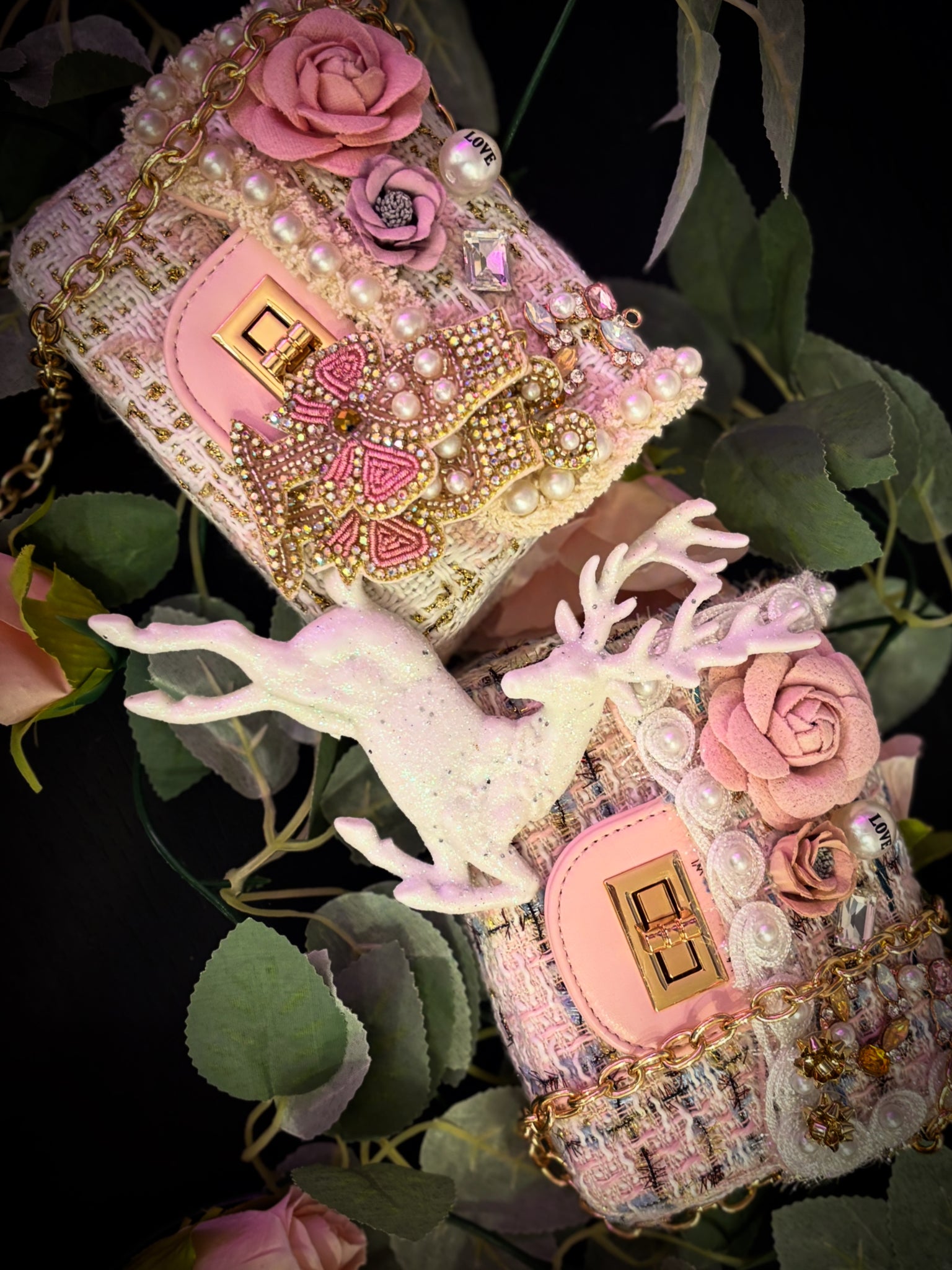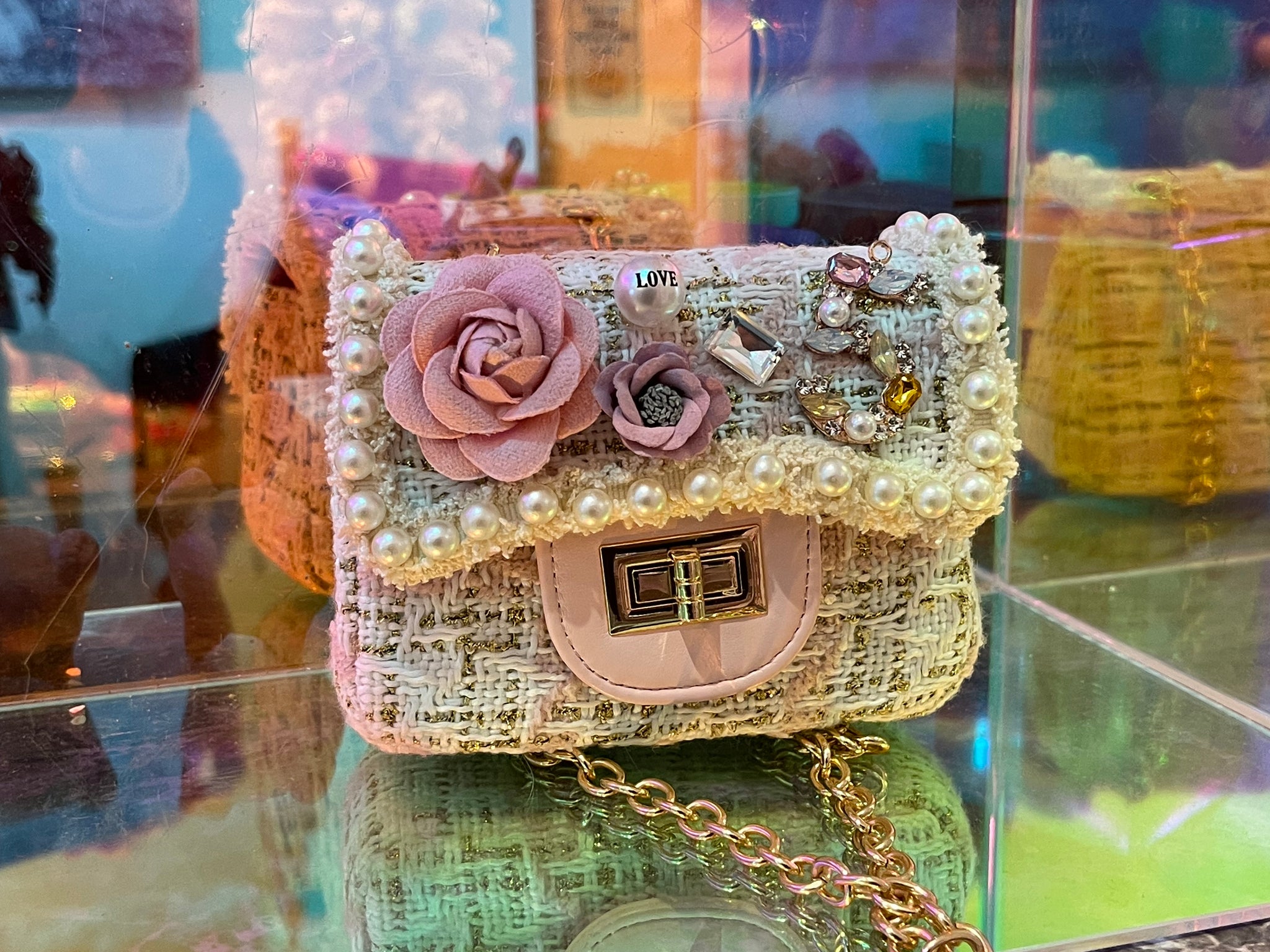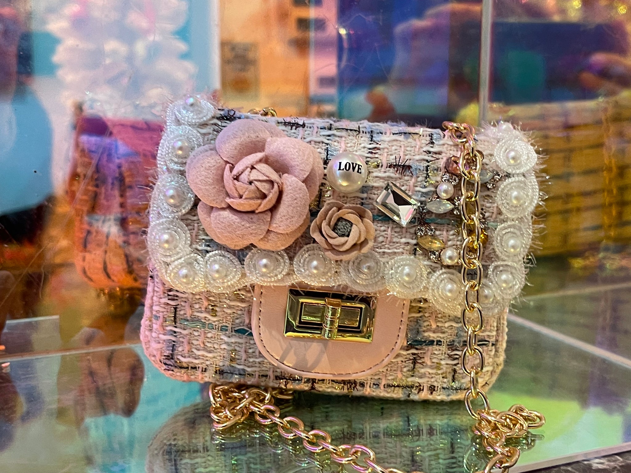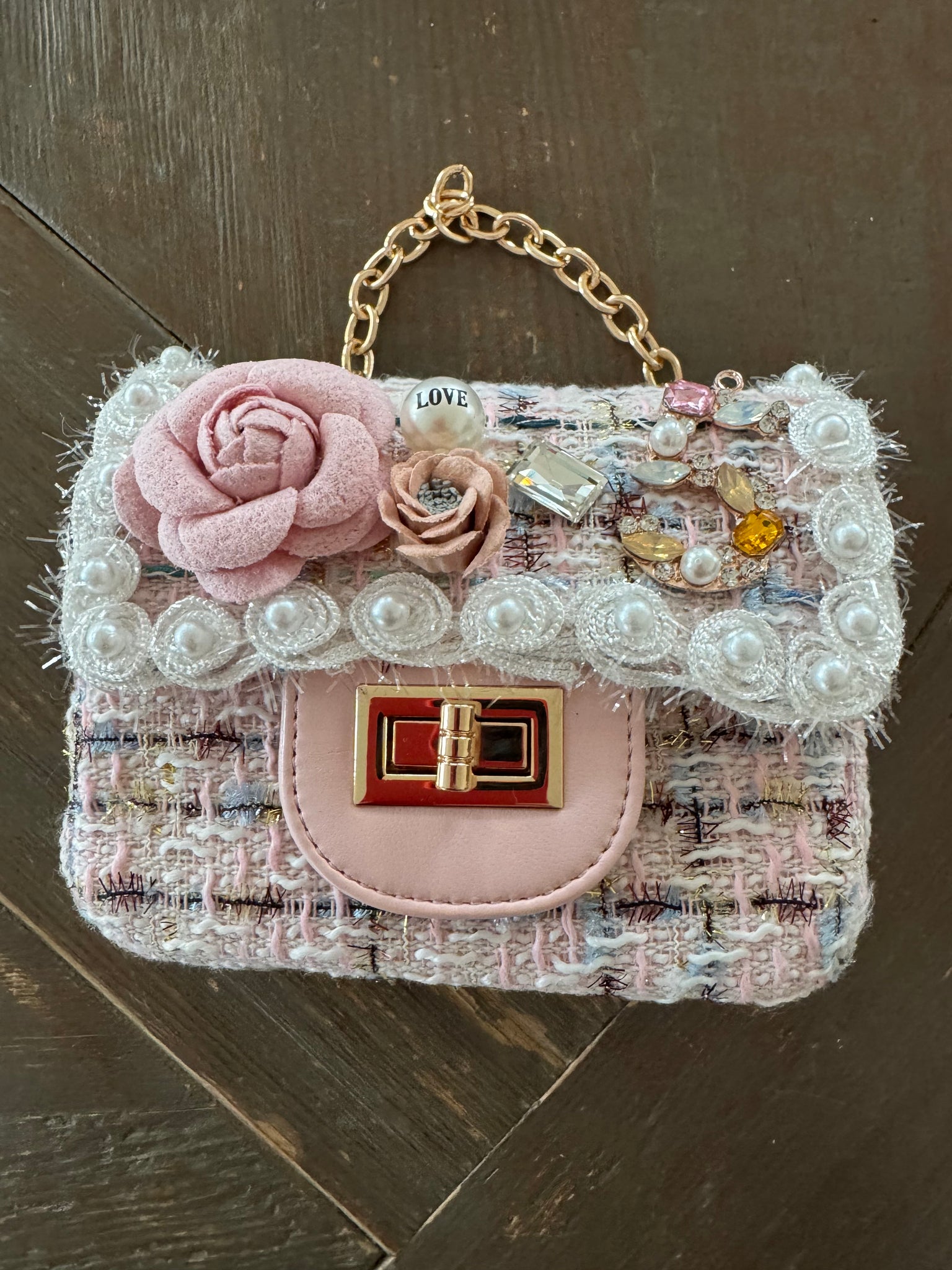 Bouclé Tweed Mini Purse with Floral, Pearl, & Rhinestone Embelishments