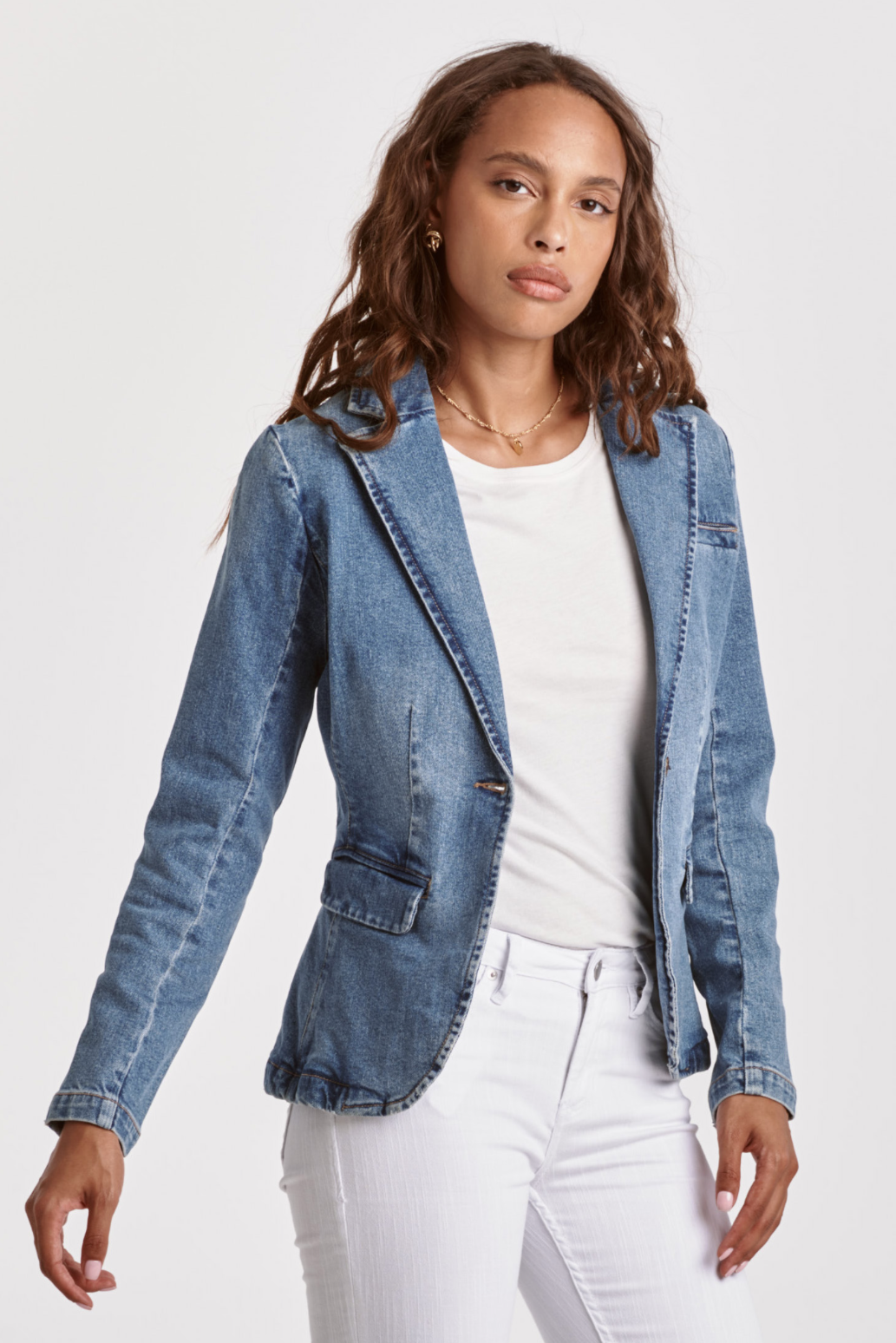 The sophisticated Minah long sleeve denim blazer is an instant essential.