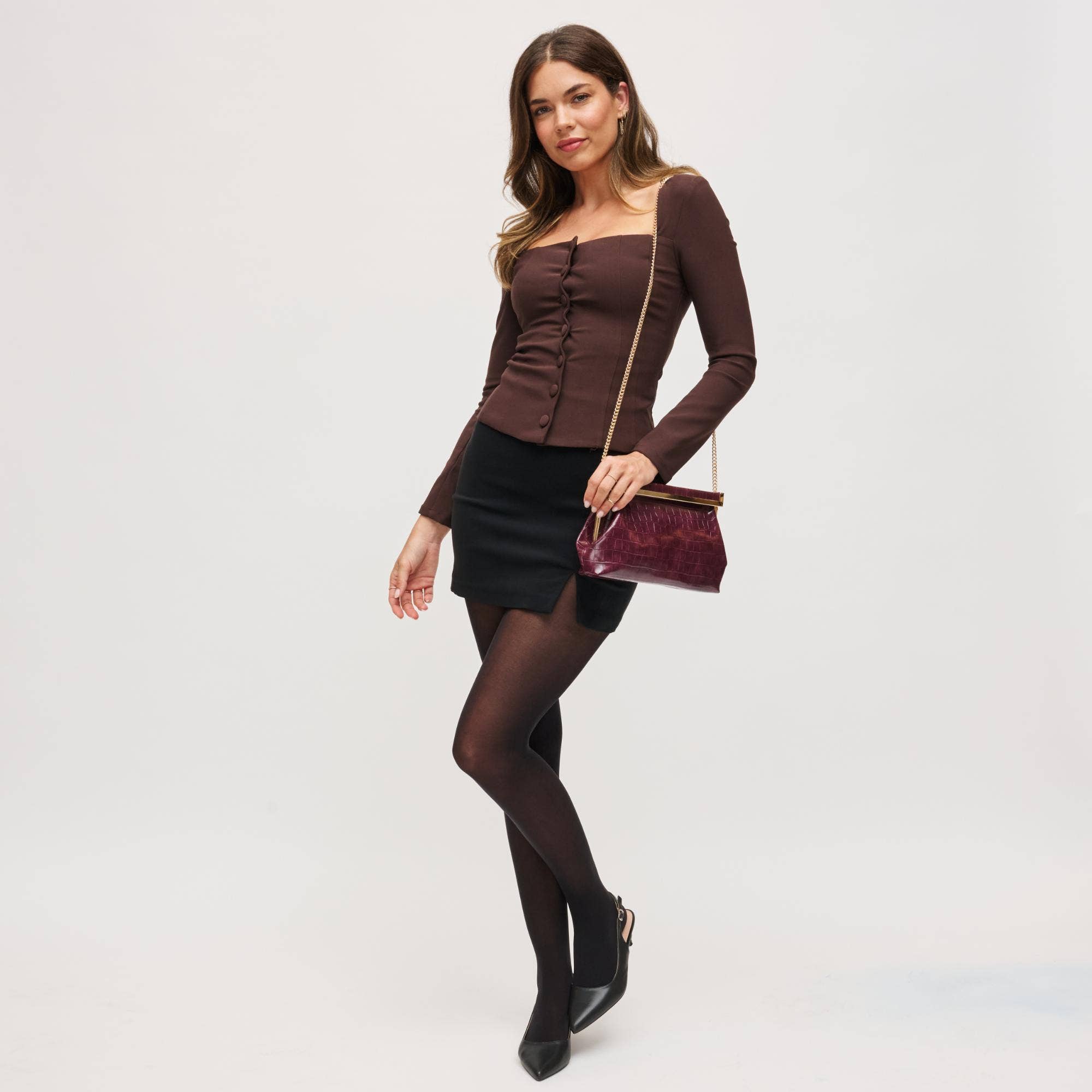 This chic accessory combines a sleek silhouette with a luxurious finish, ensuring you look polished at any event. Its versatile design effortlessly transitions from day to night, making it perfect for both professional settings and glamorous evenings.