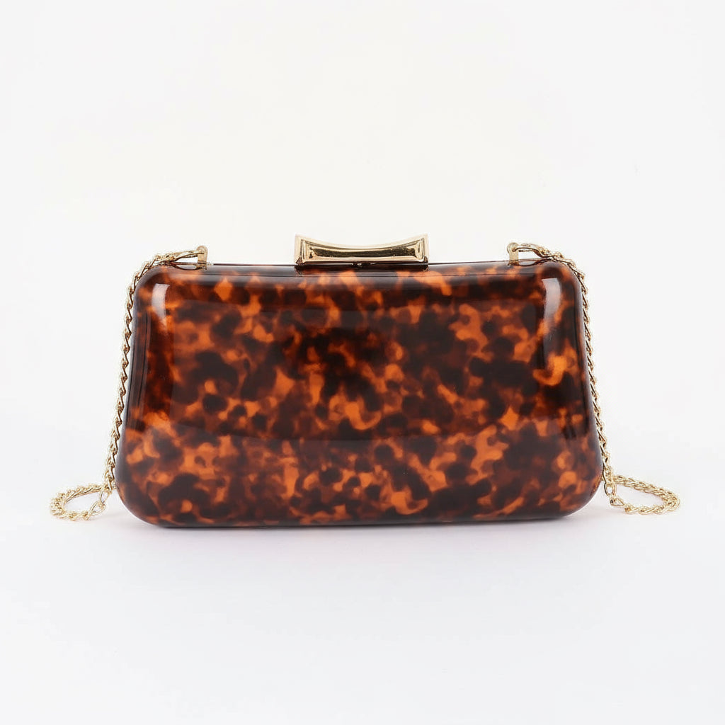 * This Faux Leather Party Clutch features a chic design with a glossy enamel - like finish and a gold chain strap. The clutch has a compact and stylish shape, perfect for adding a touch of glamour to party outfits.