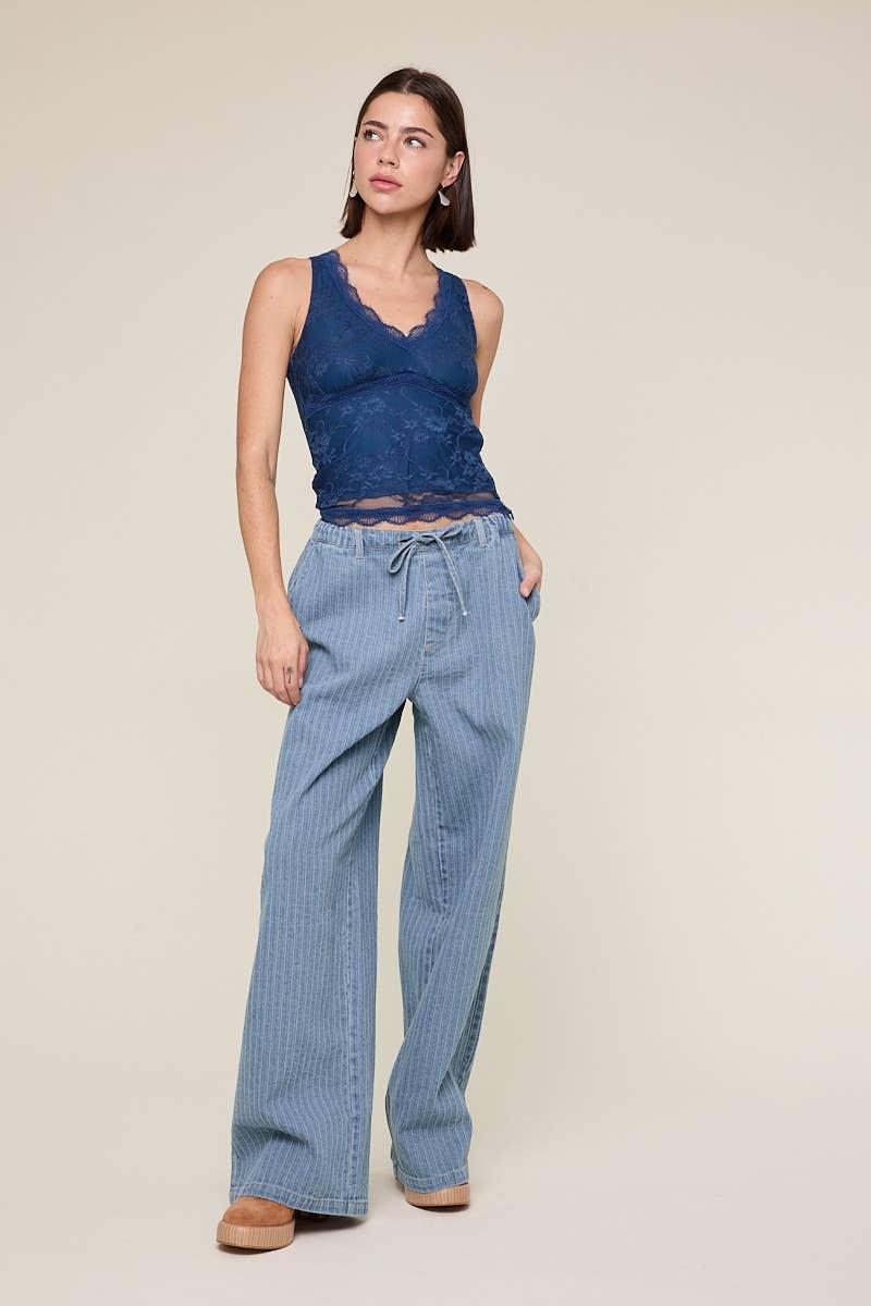Solid Color Floral V-Neck Sleeveless Side Zipper Up Scallop Lace Layered Tank Top
