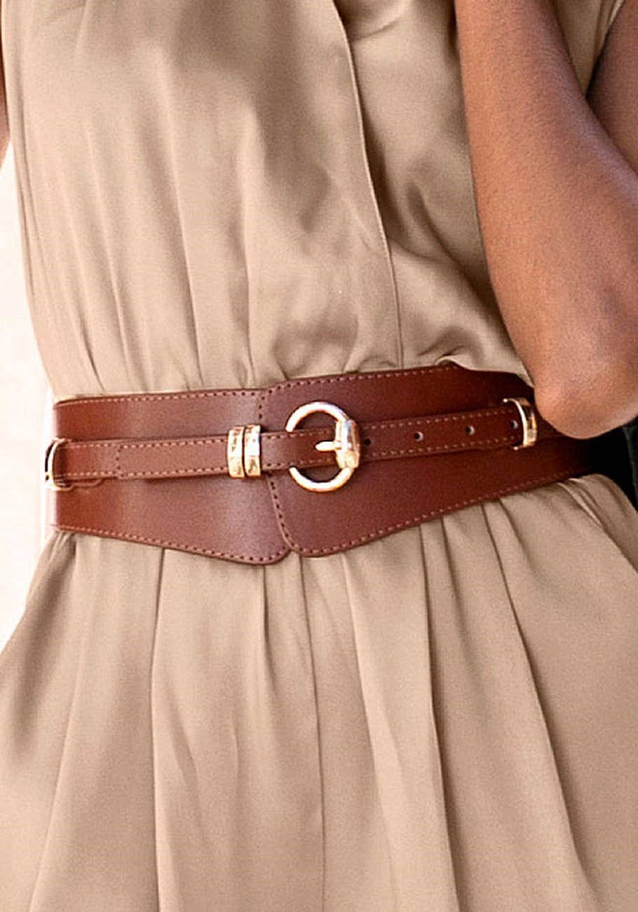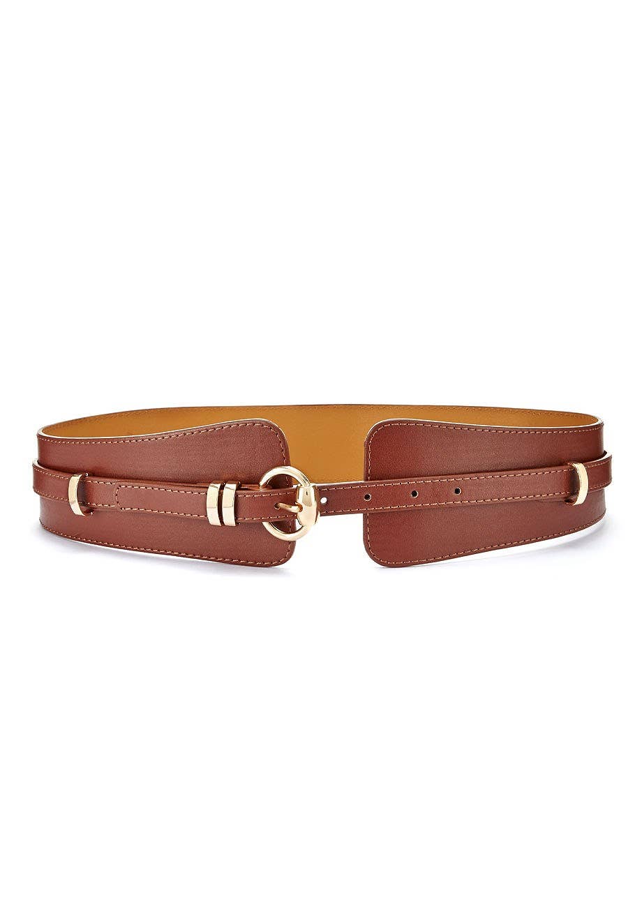 This two-in-one belt can by styled to fit your mood. * Single-pin buckle * Wide, adjustable belt with an additional detachable narrow belt * XS (28-31 inches), S (30-33 inches), M (32-35 inches), L (34-37 inches), XL (36-39 inches), XXL (39.37 inches), 3XL (41.34 inches) * Width at front approx. 3.15 inches * Width at back approx. 2.17 inches * 100% Faux Leather. Imported.